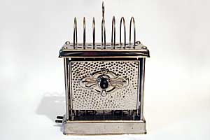 This squarish toaster has a very unusual door decoration. There are known serveral models with different doors.